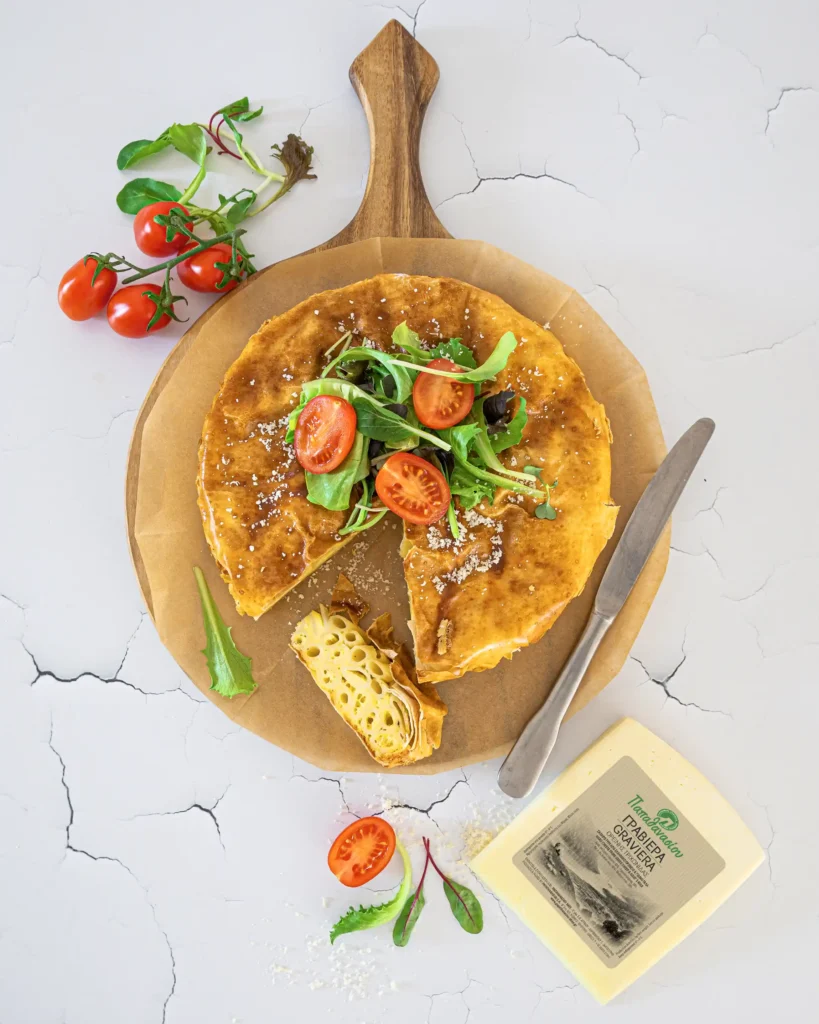 Πίτα με μακαρόνια φούρνου και Γραβιέρα Παπαθανασίου σε φύλλο κρούστας