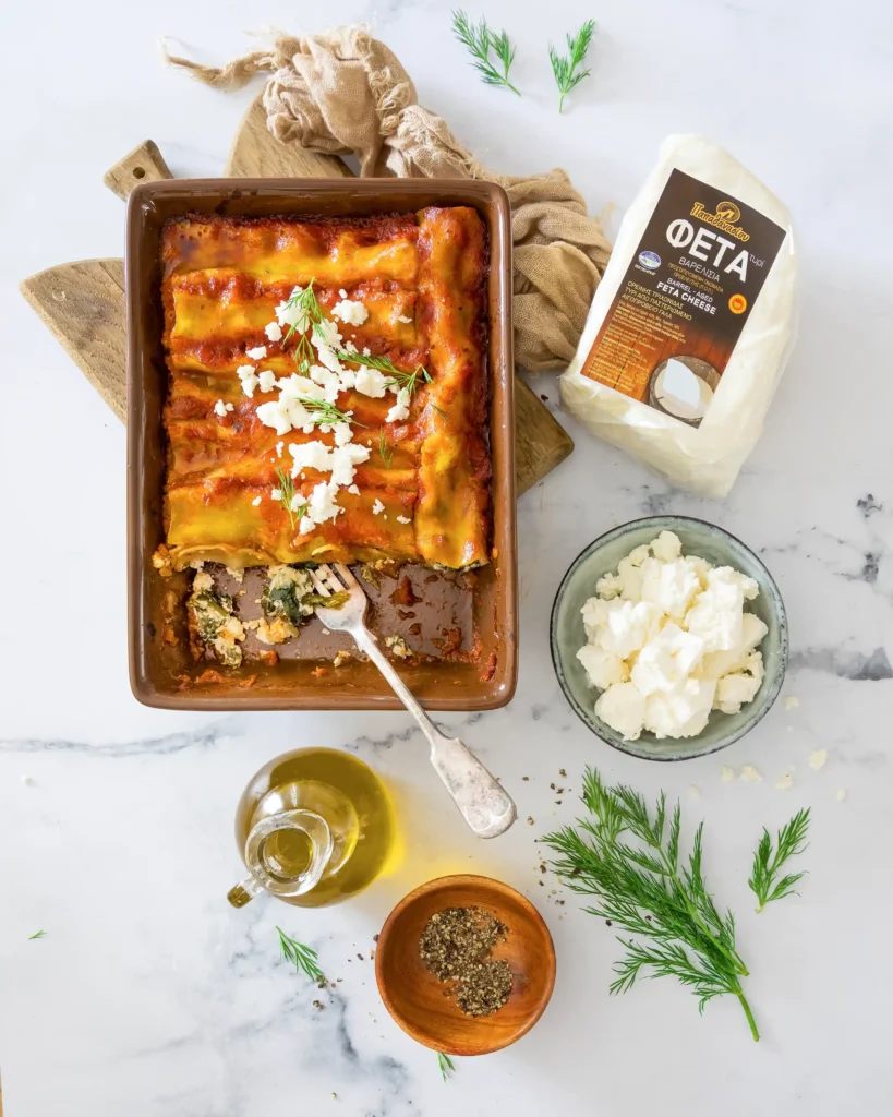 Χορτοφαγικά κανελόνια με χόρτα και Βαρελίσια Φέτα Παπαθανασίου