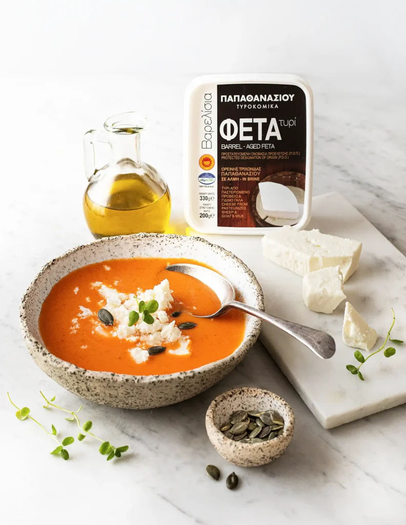Κολοκυθόσουπα με καρότο και Βαρελίσια Φέτα Παπαθανασίου