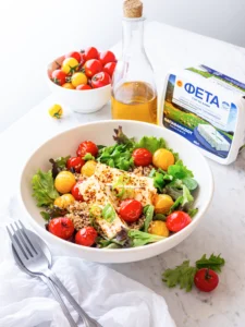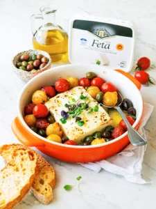 Φέτα στο φούρνο, στην Ελληνική σαλάτα, Quiche με σπανάκι και Φέτα, Σε παραδοσιακές πίτες, σε Μπρουσκέτα, σε Sandwich και σε ποικιλία τυριών.