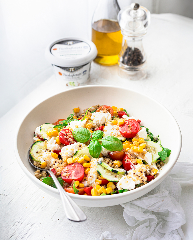 Καλοκαιρινή Σαλάτα με Κινόα, Λαχανικά και Τσαλαφούτι